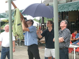 Om de bukse neet naat te laote waere ligke ze in Lin ein paraplu